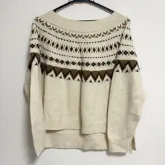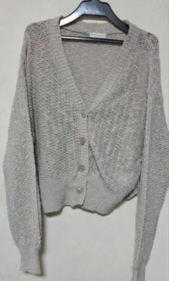 グレー系のアクリルとウール混紡の長袖ニット、編み地に変化あり。