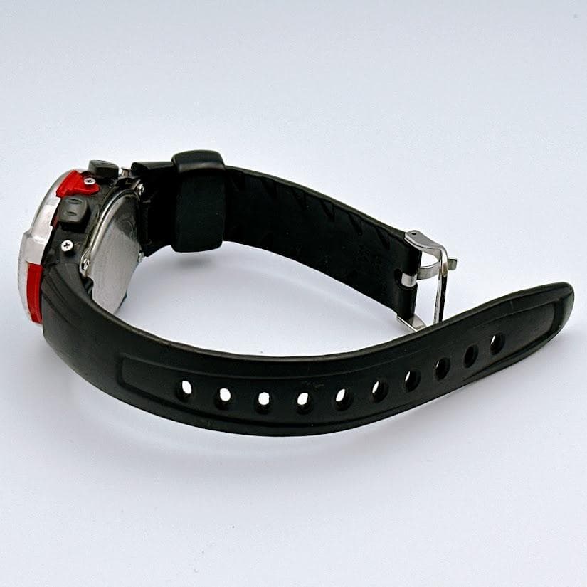 ブラック(樹脂バンド) × シルバーケース × レッドアクセント
