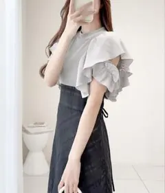 mily bilet ダブルフリル袖チェックレースドッキングワンピース