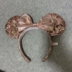 ハロウィンテーマのミッキー耳カチューシャ、オレンジのスパンコールリボン付き。