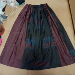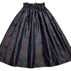 黒地に赤の亀甲柄の大島紬と化繊の着物地から着物風タックスカートを作りました。黒で引き締めながらも寒くなりゆくので暖かい色合いを入れました。