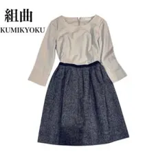 組曲 くみきょく 上品ストライプ柄 ワンピース グレー