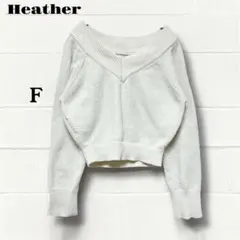 ヘザー 長袖リブニット 袖リボン スクエアネック クロップド丈 フレアスリーブ黒