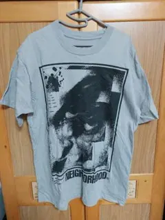 ブラックTシャツ、NEIGHBORHOODのプリントデザイン。