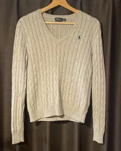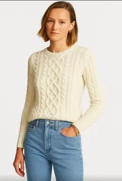 アイボリーのケーブルニットセーター、Lサイズ☆