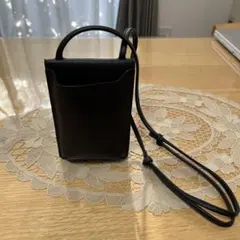 シンプルでスタイリッシュなブラックの合成皮革製スマホショルダーバッグ、調整可能なストラップ付き。