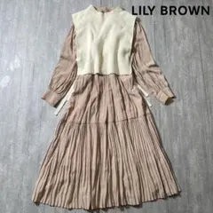 Lily Brown チェーン柄 ボータイ付 ワンピース パープル フリーサイズ
