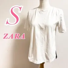 ザラ カットソー 半袖 総レース 綿混 ハイネック インナー付ストレッチ