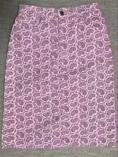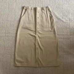 クリーム色のタイトスカート、ポリエステル素材で快適な着心地。