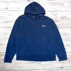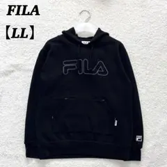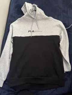 FILAのブラックフード付きパーカー、ロゴ刺繍入りでスタイリッシュ。