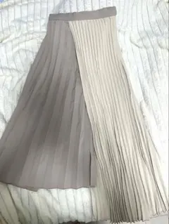配色の組み合わせが可愛いスカートです。イレギュラーヘムデザインに仕上げ、シルエットが単調なプリーツスカートにも動きが出てマンネリ化している方にもお勧めなスカートになります。ボリュームが出すぎない様に厚手の生地を使用しているので高級感も感じさせてくれる素材に仕上げています。ウエストは後方のみギャザーを入れており履き心地も楽です。肉厚ニットやスエットなどの重量感のあるトップスとがお勧めです。