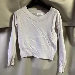 アイボリーのレース編みニットセーター、長袖デザイン。