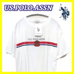フリル袖のネイビートップス、ロゴ刺繍付きでカジュアルスタイルに最適。