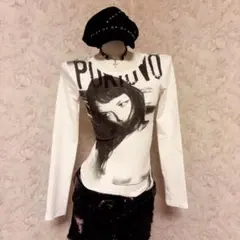 ★ 平成ギャル y2k グランジプリント 長袖ブラック ボーダー