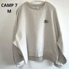 ピンクのCAMP7ロゴ入りスウェット、ルーズフィットデザインで快適な着心地。