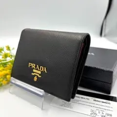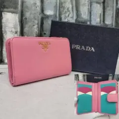 【PRADA】プラダ財布☆サフィアーノ☆コンパクトウォレット☆ピンク☆付属品付き