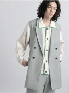 バイカラーでロングジレ、スウェットやジャケットやコートの上から合わせるとアクセントになってかっこいいです。