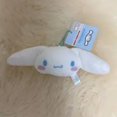 サンリオの可愛い白いシナモロールぬいぐるみマスコット、ストラップ付きで持ち運びに便利です。
