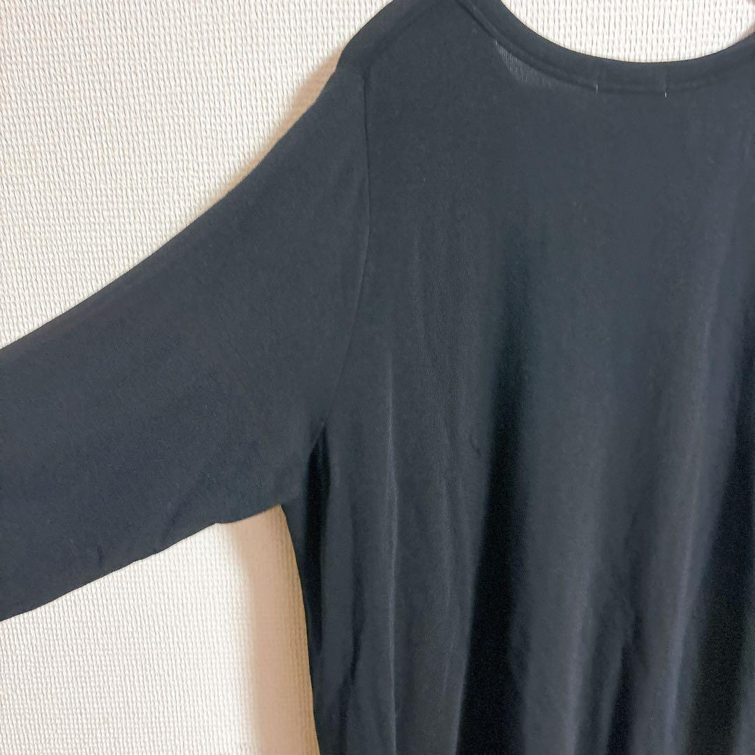 シンプルなデザインのブラックカットソーワンピース、快適な着心地を提供します。