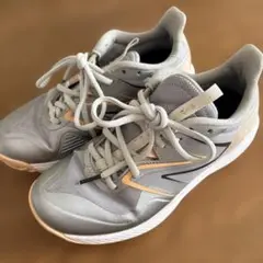 月に2度程室内のテニスコートで使用していました。履き口に小さな表面のめくれがありますが、ソールの減りや大きな破れなどもなく状態は悪くないと思いますが、中古品ですのでご理解の上ご購入下さい。