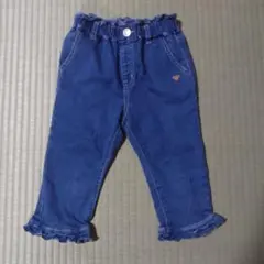 チャコールグレーのコーデュロイ素材、ボタン付きフリルデザインの120cmショートパンツです。