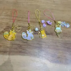 合金ビーズ ストラップ♡猫 トースター ハート リボン