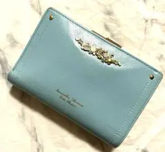 サマンサタバサのピンクレザー二つ折り財布、4つのカードスロットと小銭入れ付き。