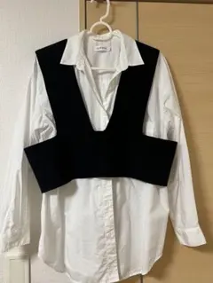 身ごろが大きいのでガボッと着るタイプのベストです。後ろ身ごろが下がったスタイルです。これからの時期に着用いただける一枚かと思います。