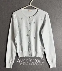 アベニールエトワールの上品なビジュー付きパールボタンカーディガン、サイズは38で色は優しいクリームベージュ系です。