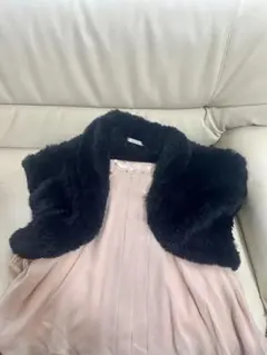 黒に近いダークネイビーで、控えめで上品な煌めきのあるワンピースです。