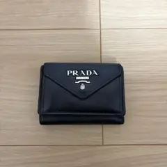 希少✨プラダ 三つ折り財布 ヴィッテログレイン レザー ロゴ金具 ブラック