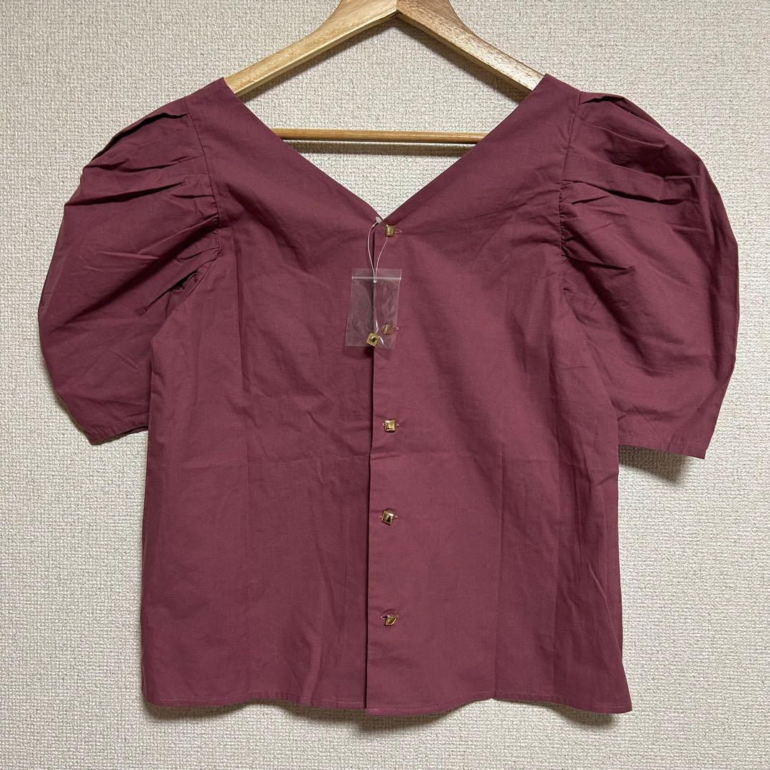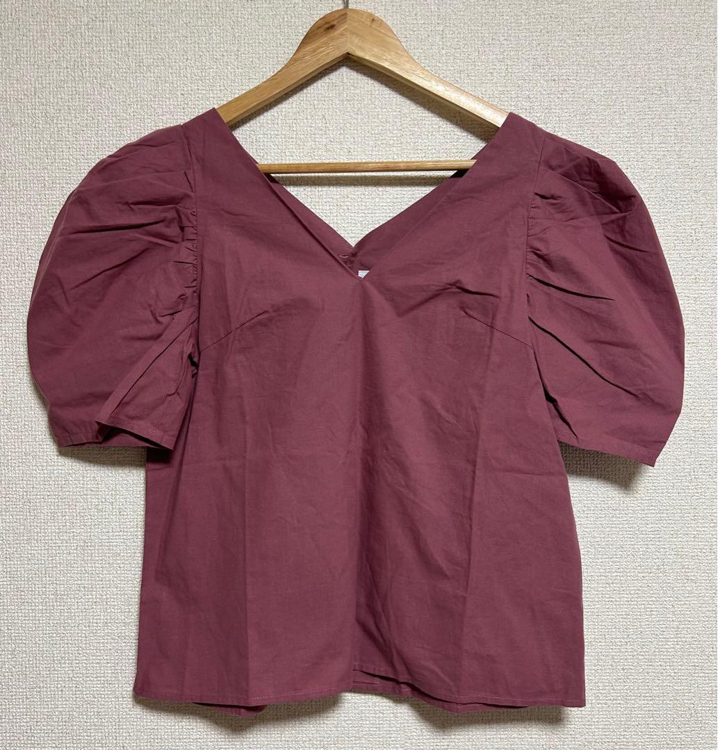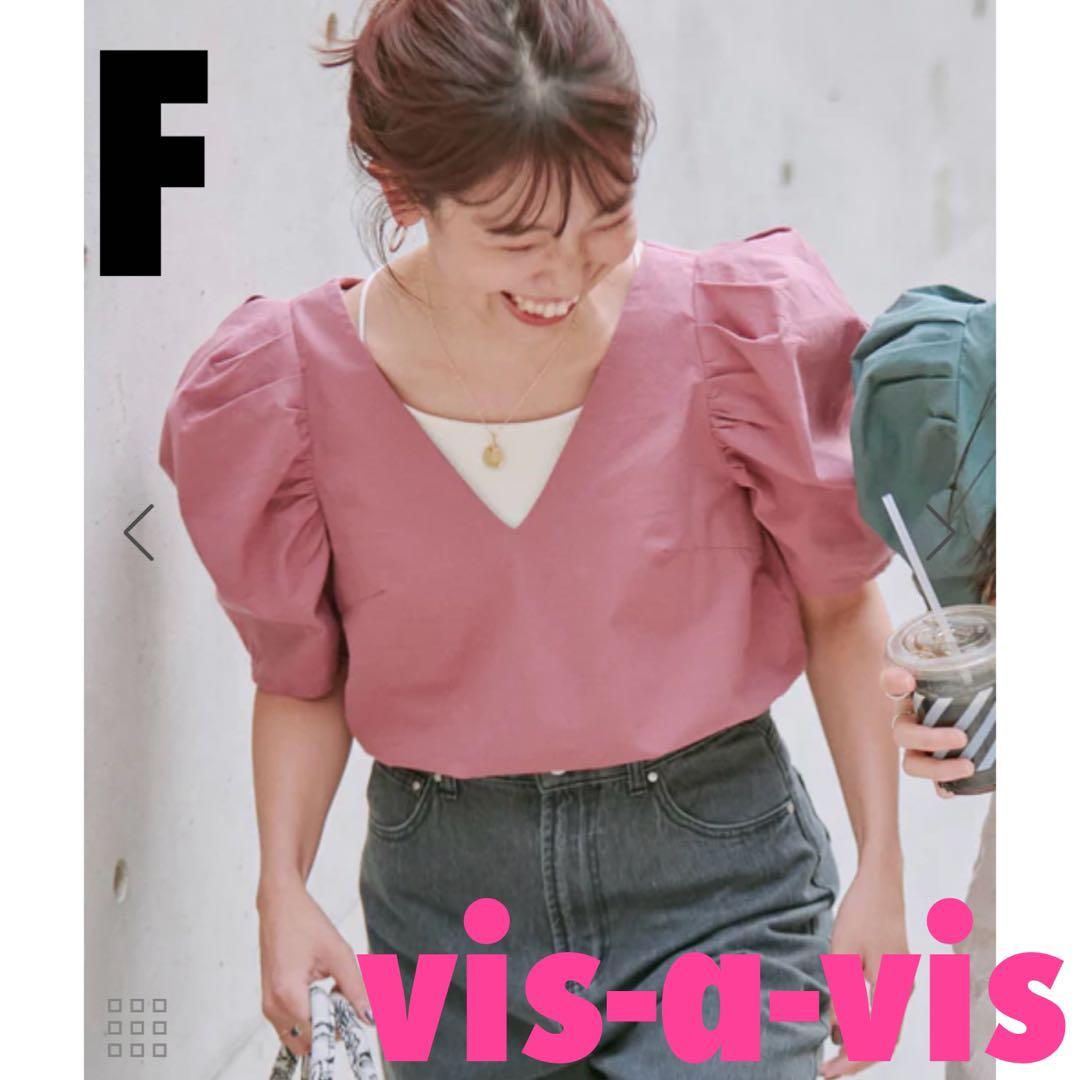 vis-a-vis ビス Vネックボリュームスリーブブラウス フェミニン ピンク