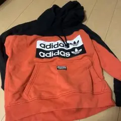 adidas オレンジ フード付きパーカーM
