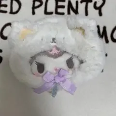ファー素材の紫色のクロミちゃんデザインポーチ。