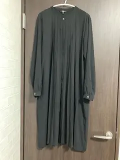 長袖シャツワンピース、ボタン付きでカジュアルに着こなせます。