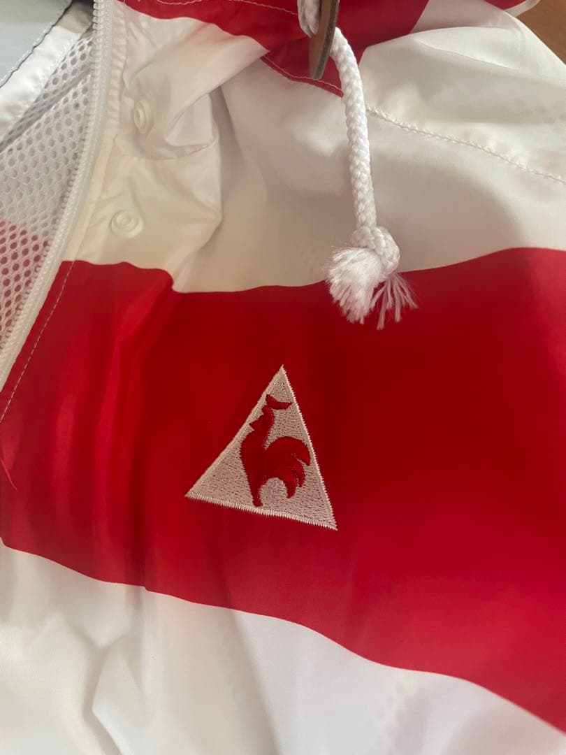 美品 ルコック ゴルフ 薄手 ジャンパー 赤 ボーダー アウトドア アウター