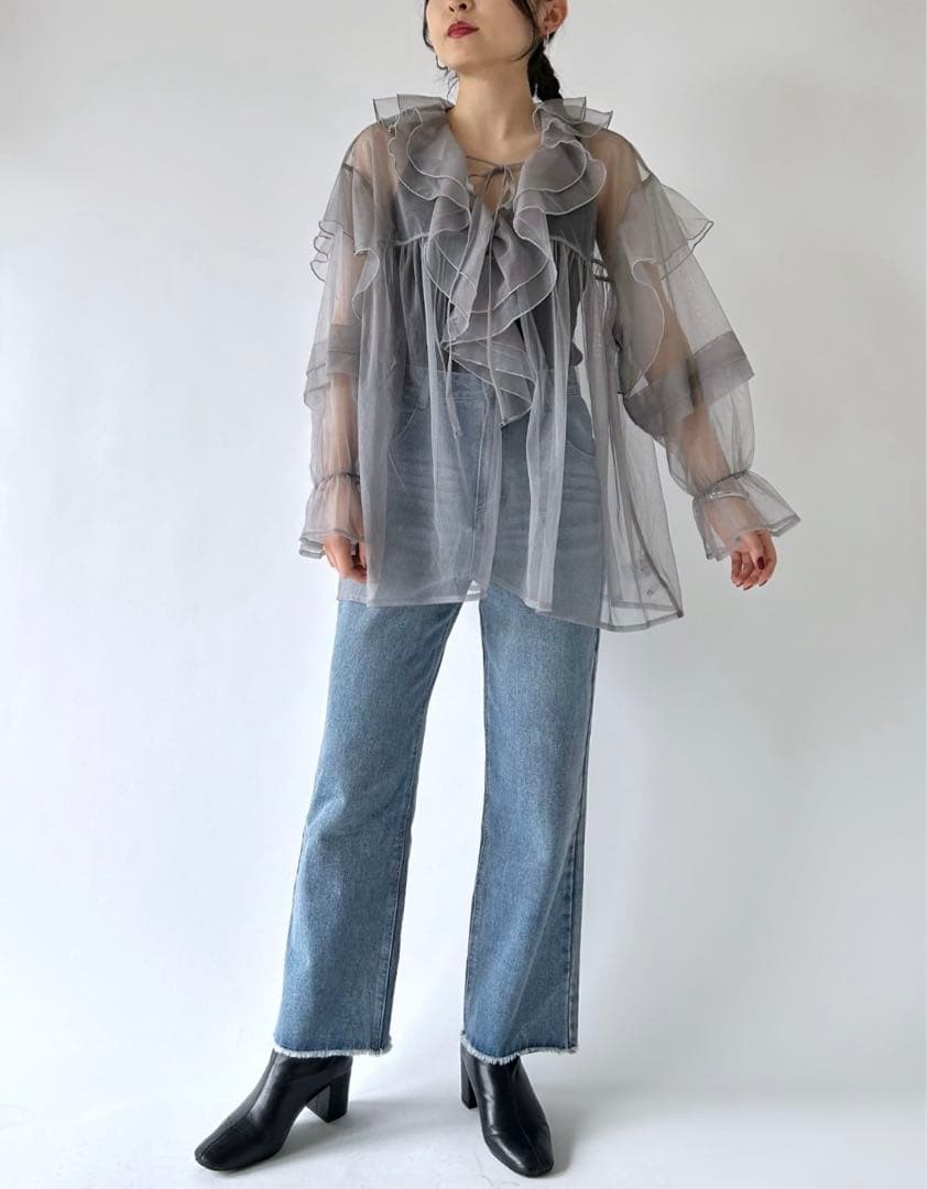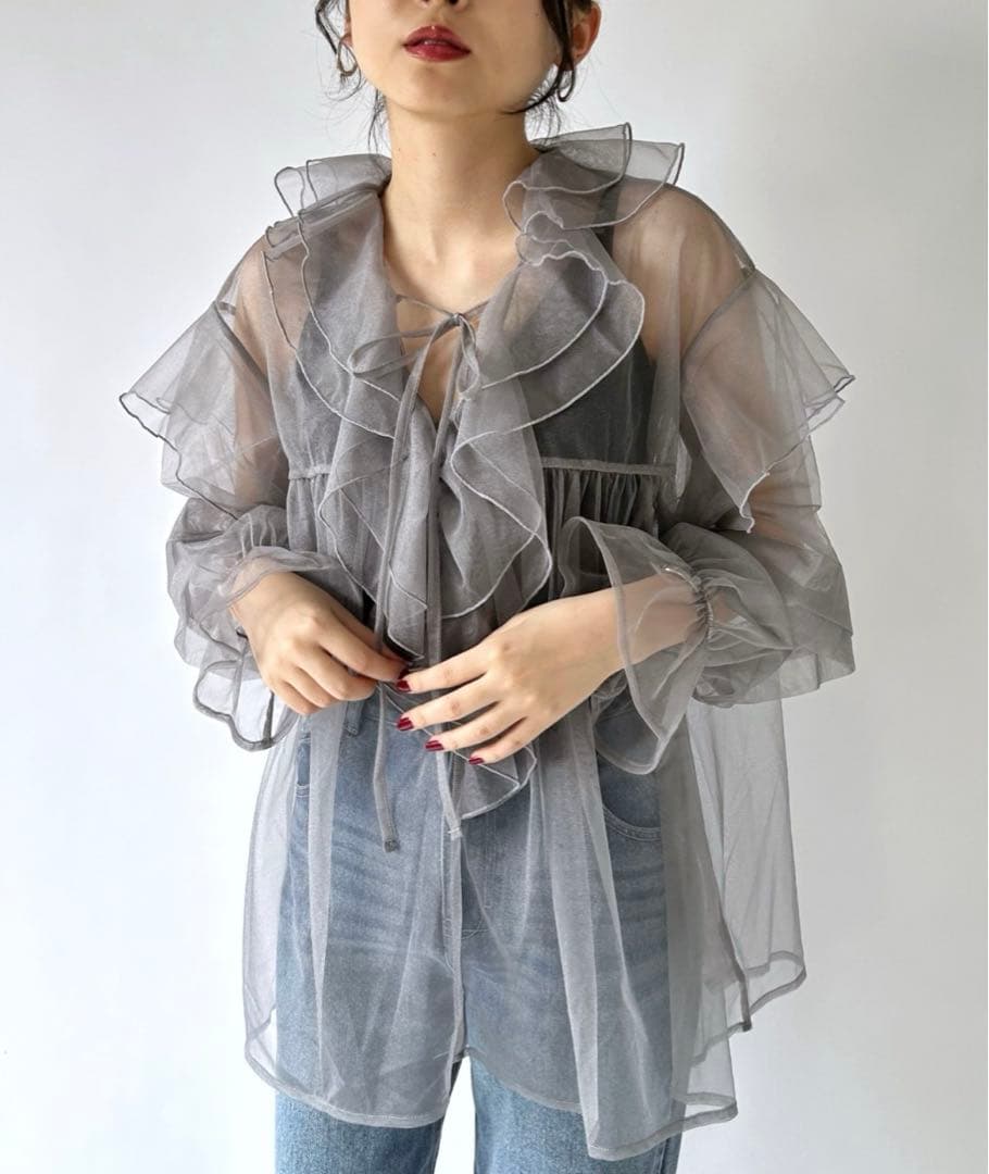 【自宅での試着のみ】 シースルーフリルブラウス グレー
