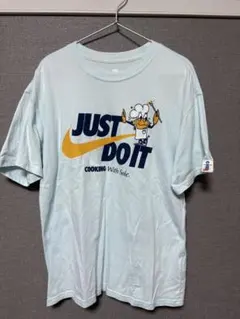「JUST DO IT」のロゴが散りばめられたデザインで、カジュアルなスタイルに最適です。どんなコーディネートにも合わせやすく、個性的な印象を与えます。