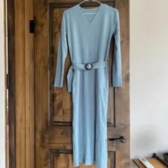 ペイズリー柄のパフスリーブミディドレス、リボン付きでエレガントな印象。