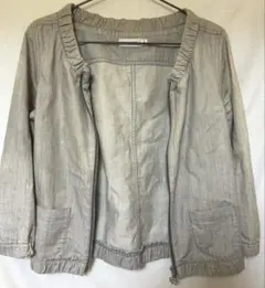 1番上のボタンまで閉めると首もとまで隠れます。1番上のボタン開けると襟のようになります。