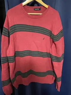 NAUTICAのニットになります。アーガイル柄のネイビーのスウェットはジーンズやら、スラックスやら、ミリタリーやらなんでも似合いますよね。しっかりとした着心地を感じられ、柄もとても可愛く、男女ともにいけると思いますので、ぜひどうでしょうか。