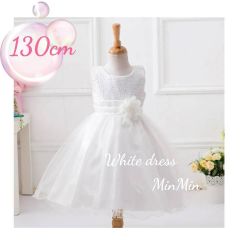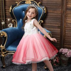 スカラップヘムと花の装飾が特徴のフォーマルドレス。