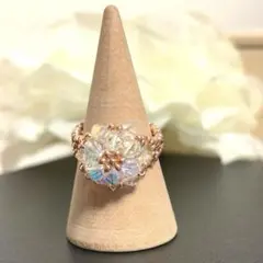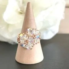 【値下げ✨️】ハンドメイド ビーズ 指輪 スワロフスキー 7号 8号