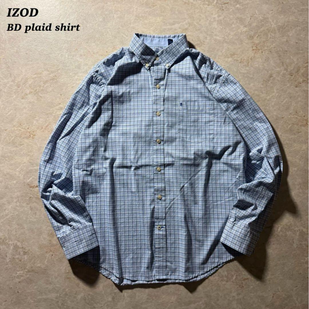 IZOD BD plaid shirt L/Sミニチェック古着ブルー美品当時物青