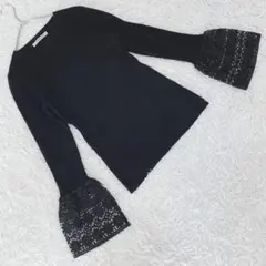 【USED】ローズバッド ネイビー レース 9分袖 ニット Fサイズ