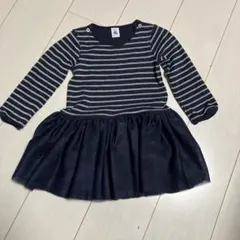 プチバトー110cmネイビー ストライプワンピース 長袖