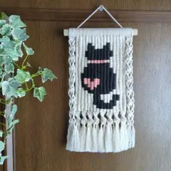 【一点物】マクラメタペストリー 布ブローチ飾り付き【lukoni#274】