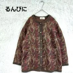カーディガン ニット 長袖 レトロ 昭和レトロ 金ボタン 刺繡 マルチカラー