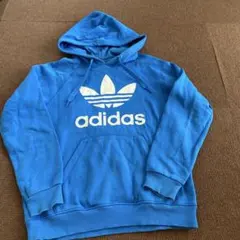adidasのロゴが特徴的なブラックフード付きパーカー。