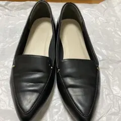 金具付きのシンプルな黒ローファー。